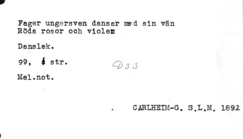 //// Fager ungersven dansar md sin vän //// Röda rosor och violen //// Danslek. //// <* //// 99, 4 str. //// Mel.not. //// C^RLHEIM-G. S.L.M. 189^ ////