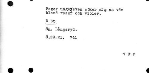 //// Fager ungersven sSker si g en vän //// bland rosor och violer. //// D 33 //// Sm. Långaryd. //// - //// S.20-21. 741 //// V F F ////