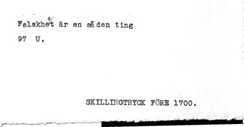 //// - - //// Falskhet är en sa dan ting //// 97 U. //// ! //// [ //// SKILLINGTRYCK FÖRE 1700. //// ____--- //// . i-===^ = ////