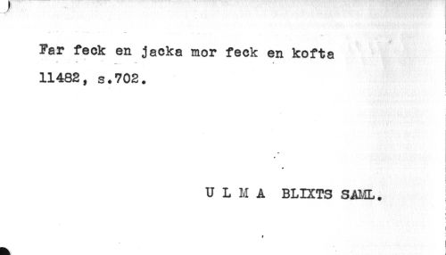 //// Far feck en jacka mor feck en kofta //// ' ** ' - * //// 11482, s.702. //// ! //// '' ' '. v.*'"',' i //// r //// ' ,. ) //// U L M A BLIXTS SAML. //// ) //// i //// _ _ . * ! ////