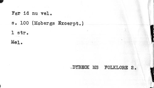 //// t- . . - ... ' m //// Far id nu vel. //// s^ 100 (Mobergs Excerpt.) j //// 1 str^ H //// Mel. * //// -DYBECK MS FOLKLORE 2. ^ ////