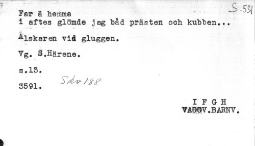 //// Far ä hemma " * //// 1 aftes glömde jag båd prästen och kubben... //// ..-. -- *- .- ----- -- - //// ^Iskaren viå gluggen. //// . - . ^ * //// Vg. S.Härene. //// s.13. //// I F G H //// VAQ5V.BARNV. //// ! ////