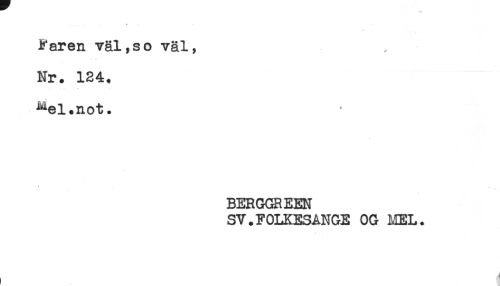 //// * ^ //// Faren väl,so väl, //// Nr. 124. //// ^el.not. //// BERGGR EEN //// SV.FOLKESANGE OG MEL. ////