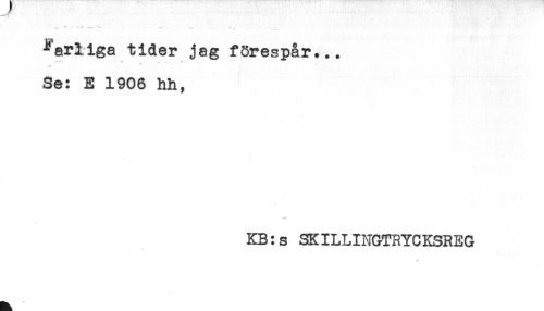 //// - - ^ - . //// ^'arliga tider jag fSrespår... //// .4"**' * _ ... * ^^ //// Se: E 1906 hh, //// KB:s SKILLINGTRYCKSREG //// * ////
