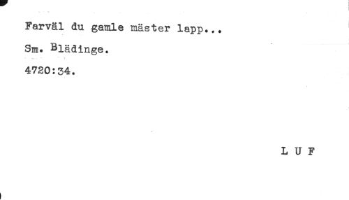 //// s V //// Farväl du gamle mäster lapp... //// Sm. Blädinge. //// .... *** ' i //// 4720:34. //// L U F ////