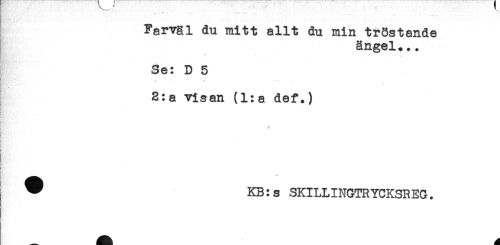 //// Farväl du mitt allt du min tröstande //// ängel... //// Se: D 5 //// - * A //// 2:a visan (l:a def.) //// * KB:s SKILLINGTRYCKSREG. ////