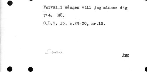 //// Farväl,! sången vill jag minnas dig //// 7t4. MÖ. //// S.L.S. 15, s.29-30, nr.15. //// - //// ABO ////