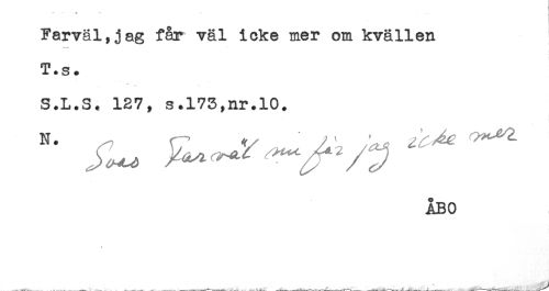 //// Farväl,jag får väl icke mer om kvällen //// * //// T.s. //// S.L.S. 127, s.173,nr.10. //// N. r- < / '..,. ^ ^ ^^ //// ÅBO ////