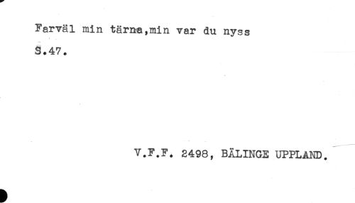 //// Farväl min tärna,min var du nyss //// S.47. //// V.F.F. 2498, BÄLINGE UPPLAND. ////
