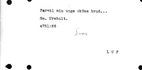 //// * . . //// < //// Farväl min unga sköna brud... //// - *** IM" //// Sm^ Urshult. //// ! * -.-v- * * //// 4751:26 //// * //// o //// L U F ////