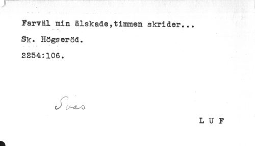 //// ) //// ** *- - * -* - - ,. - //// Farväl min älskade,timmen skrider... //// Sk. Högseröd. //// - < X ** ^ //// 2254:106. //// cJ //// L U F ////