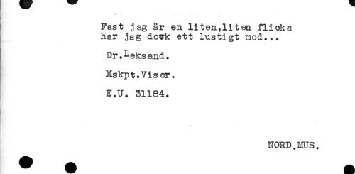 //// . ..... . ... M //// Fast jag är en liten,liten flicka //// har jag dotrk ett lustigt mod... //// Dr.Leksand. //// **** . . //// Mskpt.Visor. //// E.U. 31164. //// NORD.MUS. ////