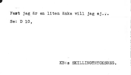 //// < //// Fact jag är en liten änka vill jag ej.i,*. //// Se: D 10, //// i //// i //// ! //// ) //// ! //// - - //// KB:s SKILLINGTRYCKSREG. ! //// ' //// * ////