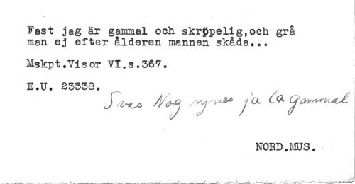 //// Fast jag är gammal och skrppelig,och grå //// man ej efter ålderen mannen skåda... //// Mskpt.Visor VI.s.367. //// E.U. 23338. //// < //// NORD.MUS. //// ' j //// t ////