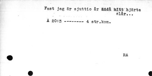 //// T-- - - " .... //// Fast jag är sjuttio år äMå ia^tt hjärta //// slår... //// t - *-< ** //// A 20:3-----4 str.kom. //// ^ RA ////
