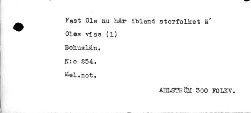 //// ^ Fast Ola nu här ibland storfolket ä' //// Oles visa (l) //// Bohuslän. //// N:o 254. //// Mel.not. //// AHLSTR ÖM 300 FOLKY. ////
