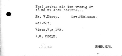 //// Fast rocken min den trasig är //// i så må ni dock besinna... //// < _ //// Sk. V.Karup. Dav.Påhlsson. //// i Mel.not. //// ! Visor,V,s.173. //// E.U. 2S015. //// J- ^^ NOBD.MUS. ////