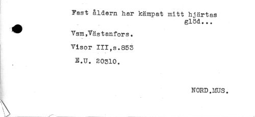 //// Fast åldern har kämpat mitt hjärtas //// glöd... //// ^ Vsm,Västanförs. //// Visor III,s.853 //// E.U. 20310. //// NORD. MUS. ////