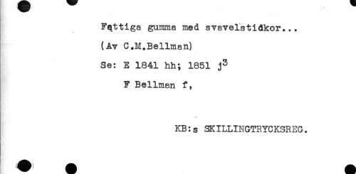 //// Fqttiga gumma med svavelstidkor... //// (Av C.M.Bellman) //// - //// Se: E 1841 hh; 1851 //// .. - o //// F Bellman f, //// KB:s SKILLINGTRYCKSREG. ////
