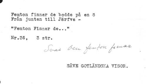 //// Femton finnar de bodde på en B //// Från juntan till Järfva - //// "Femton Finnar de..." //// Nr.36, 3 str. //// SÄTE GOTLÄNDSKA VISOR. ////