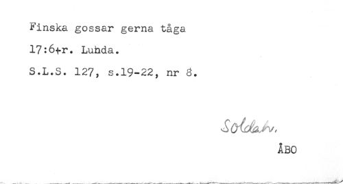 //// Finska gossar gerna tåga //// 17:6-(-r. Luhda. //// S.L.S. 127, s.19-22, nr //// ÅBO ////