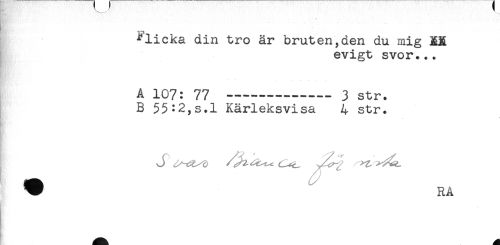 //// t wii < ^ - //// HHK&r - //// t ' . //// ^licka din tro är bruten,den du mig XX //// evigt svor... //// A 107: 77 --- 3 str. //// B 55:2,s.l Kärleksvisa 4 str. //// K ////