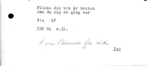 //// } //// Flicka din tro är bruten //// ^ den du mig en gång var //// 3:4 LF //// INE 94 s.31. //// ABO ////