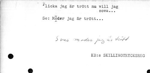 //// M //// ] licka jag är trött nu vill jag //// ! sova... //// i Se: Moder jag är trött... //// ^ KB:s SKILLINGTRYCKSREG //// A ////