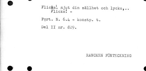 //// Flicåa'. njut din sällhet och lycka,.. //// Flicka! - ' //// Pgrt. N. 6.4 - konstp. t. //// Del II nr. 829. //// RANCKEN FÖRTECKNING ////
