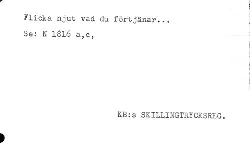 //// t //// Flicka njut vad du förtjänar... //// Se: N 1816 a,c, //// < //// ! //// i //// t //// t //// i //// j //// KB:s SKILLINGTRYCKSREG. ////
