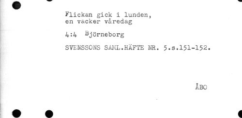 //// Flickan gick i lunden, //// en vacker våredag //// - //// 4:4 Björneborg //// SVENSSONS SAML.HÄFTE NR. 5*s.151-152. //// t //// ÅBO ////
