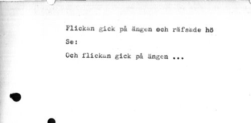 //// * //// K' ' //// Hickan gick på ängen och räfsade hö //// Se: //// . //// Och flickan gick på ängen ... //// . //// . ////