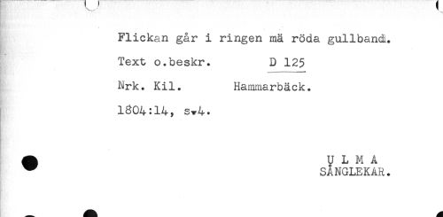 //// Flickan går i ringen mä röda gullbandi. //// Text o.beskr. D 125 //// Nrk. Kil. Hammarbäck. //// 1604:14) s-*4. ////