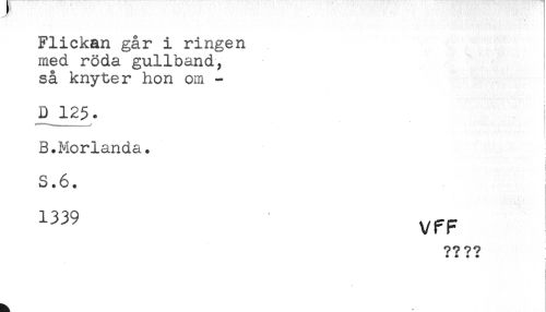 //// Flickan går i ringen //// med röda gullband, //// så knyter hon om - ! //// D 125. //// B.Morlanda. //// i //// S.6. //// 1339 ^ //// ?? ?? //// * * * * ////