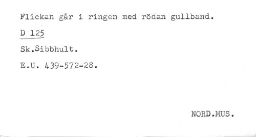 //// Flickan går i ringen med rödan gullband. //// D 125 //// Sk.Sibbhult. //// E.U. 439-572-28. ////