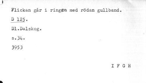 //// Flickan går i ringen med rödan gullband. //// D12$. //// Dl.Dalskog. //// s.34. //// 3953 ////