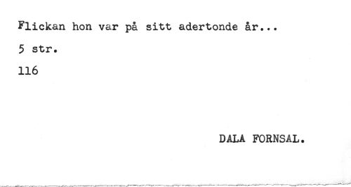 //// Flickan hon var på sitt adertonde år... //// 5 str. //// 116 //// DALA FORNSAL. ////
