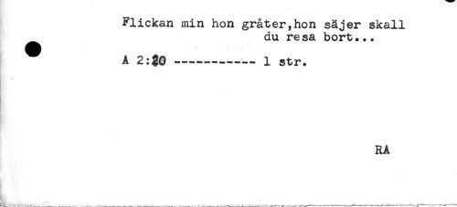 //// Flickan min hon gråter,hon säjer skall //// du resa bort... //// A 2:20-----1 str. //// RA ////