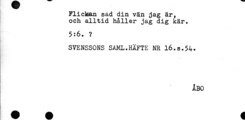 //// Flickan sad din vän jag är, //// och alltid håller jag dig kär. //// 5:6. ? //// SVENSSONS SAML.HÄFTE NR 16.S.54. //// ÅBO ////