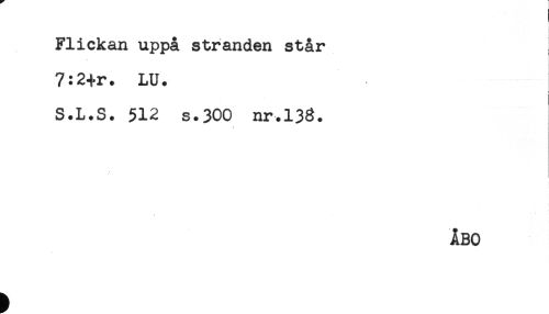 //// ! //// Flickan uppå stranden står //// 7:2+r. LU. ! //// t //// S.L.S. 512 s.300 nr.138. //// ÅBO ////