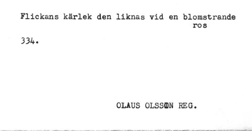 //// Flickans kärlek den liknas vid en blomstrande //// ros //// 334. //// OLAUS OLSStDN REG. ////