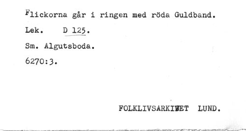 //// flickorna går i ringen med röda Guldband. //// Lek. D 125. //// Sm. Ålgutsboda. //// 6270:3* //// . //// FOLKLIVSARKIBET LUND. ////