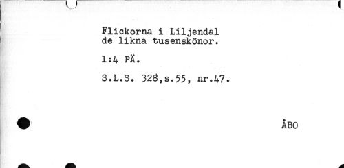 //// Flickorna i Liljendal //// de likna tusenskönor. //// - //// 1:4 PÄ. //// S.L.S. 323,s.55, nr.47. ////