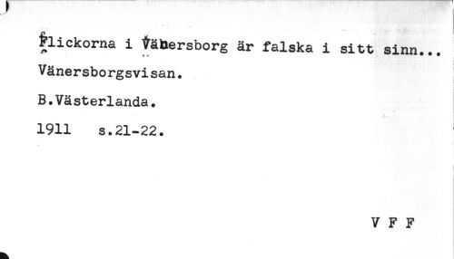 //// flickorna i tähersborg är falska i sitt sinn... //// Vänersborgsvisan. //// < //// B.Västerlanda. //// 1911 s.21-22. //// * //// i //// i //// ! //// V F F //// - ////