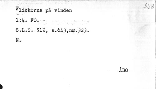 //// F //// flickorna på vinden //// 1 * FÖ* - ^, - ^^ . //// - ^ . ' - ... ' - * ' ' .... " //// S.L.S. 512, s.643,n^.323. //// N. //// < //// i //// t //// ÅBO //// } ////