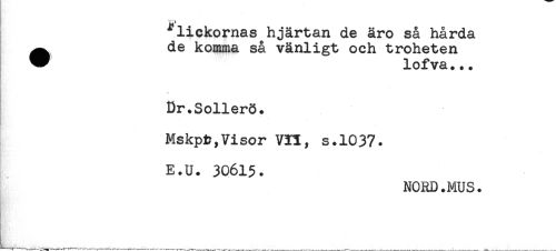 //// *lickornas hjärtan de äro så hårda //// ^ de komma så vänligt och troheten //// * lofva... //// Dr.Sollerö. //// . //// Mskpiy,Visor VH, s.1037. //// E.U. 30615. //// NORD.MUS. ////