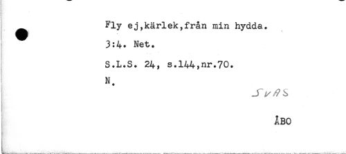 //// i ^ - ' //// ) //// i //// Fly ej,kärlek,från min hydda. //// 3:4. Net. //// S.L.S. 24, s.144,nr.70. //// N. ////