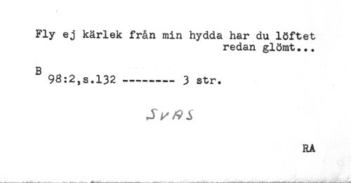 //// Fly ej kärlek från min hydda har du löftet //// redan glömt... //// g //// 96:2,s.132.......- 3 str. ////