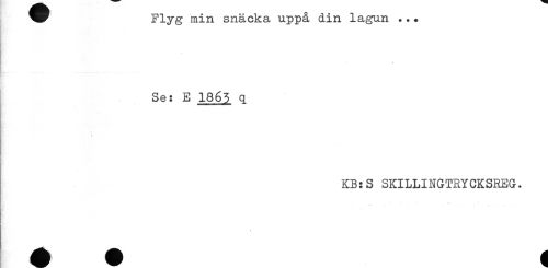 //// Flyg min snäcka uppa dm lagun ... //// Se: E 1863 q //// KB:S SKILLINGTRYCKSREG. ////