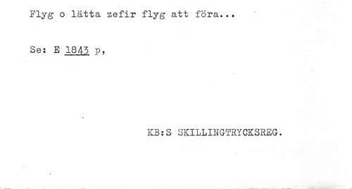 //// Flyg o lätta zefir flyg att föra... //// Se: E 1843 P, //// KB:S SKILLINGTRYCKSREG. ////